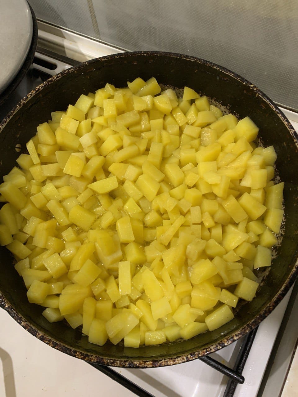 Potatoes, Medium Dice, Cast Iron, Ghee. YUM!